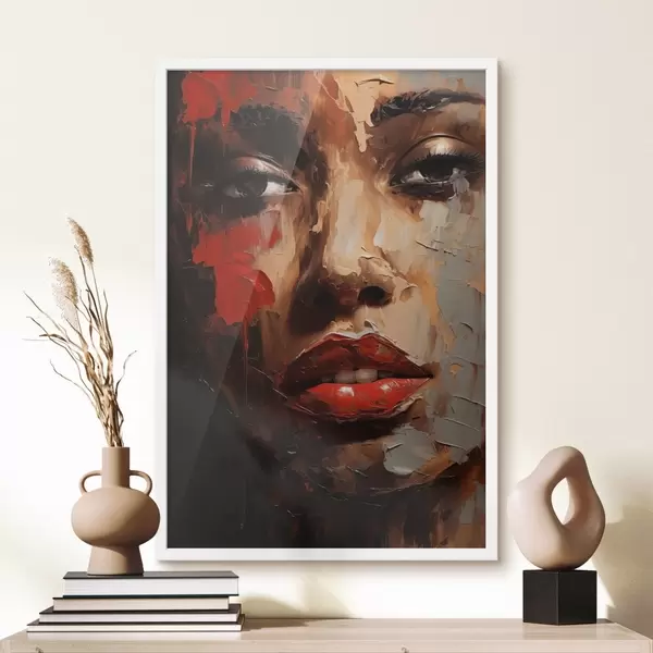 Plakat Wyrazisty portret kobiety z czerwonymi akcentami f47293