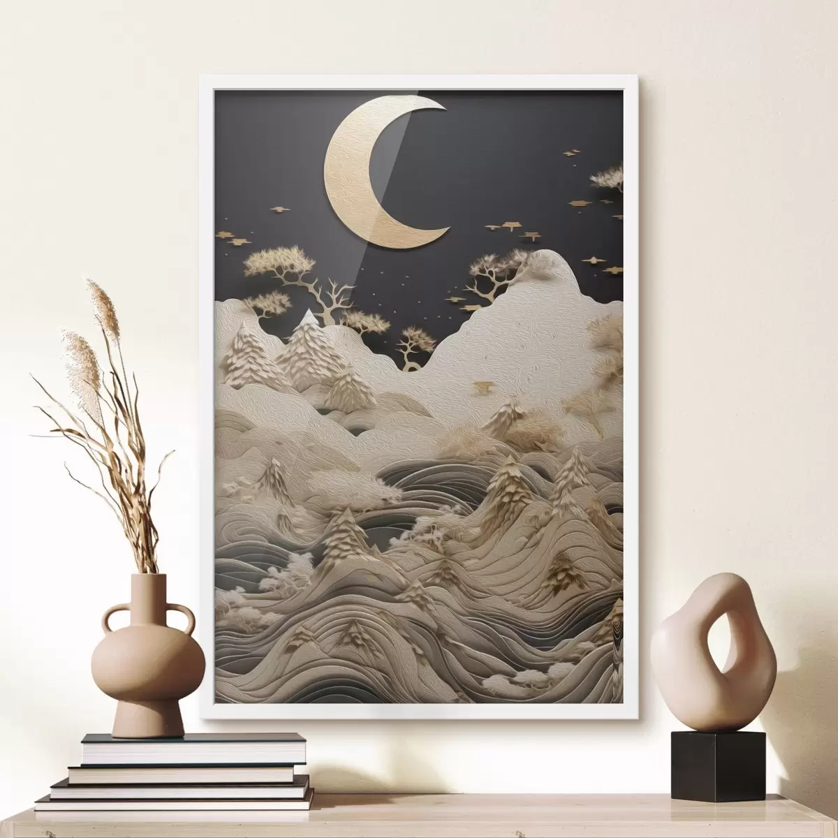 Poster Stylizowane góry i drzewa pod księżycem Nr f47300