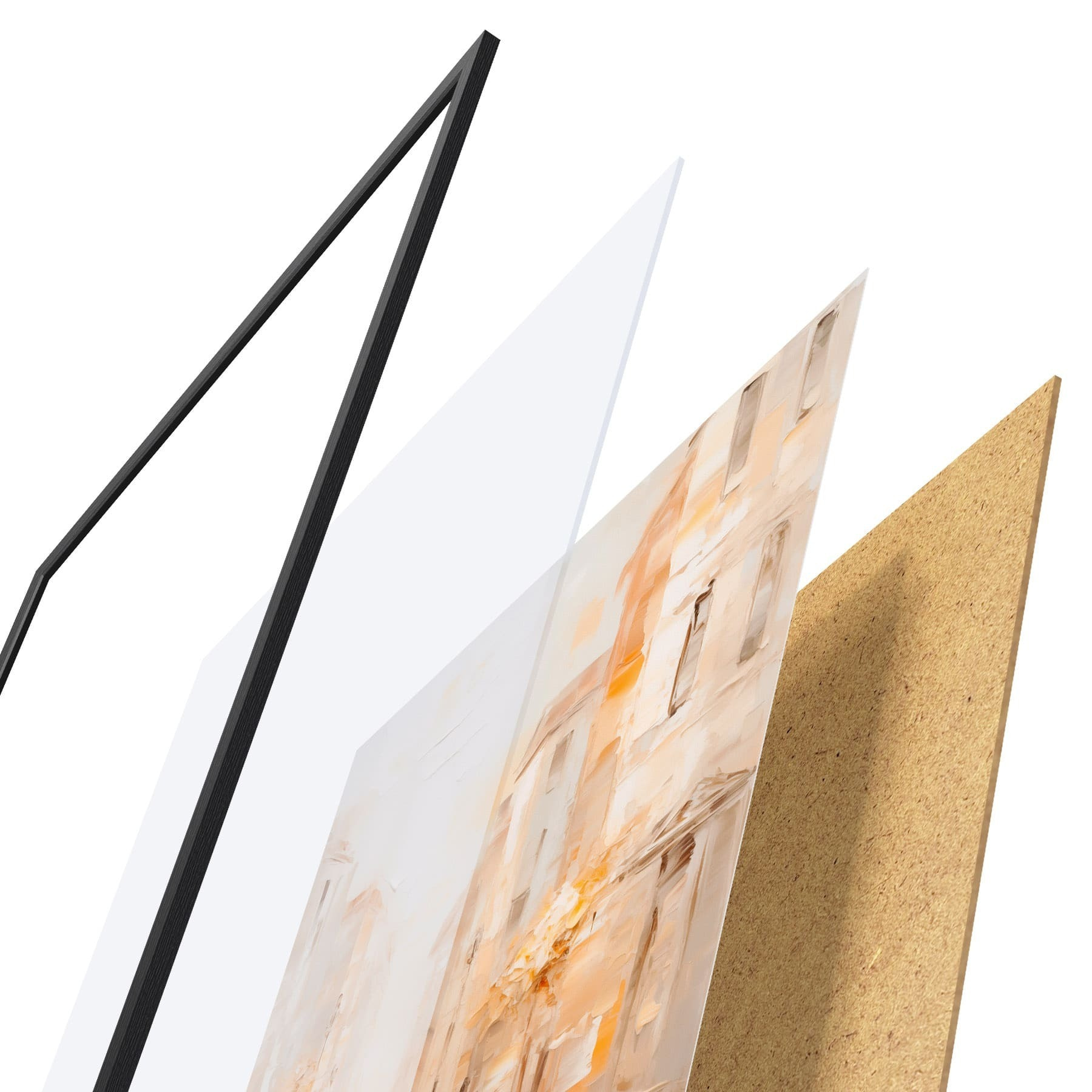 Plakat składa się z ramy, pleksi, wydrukowanego obrazu i podkładu z płyty wiórowej. Plakat można natychmiast zawiesić na ścianie dzięki uchwytom z tyłu.
