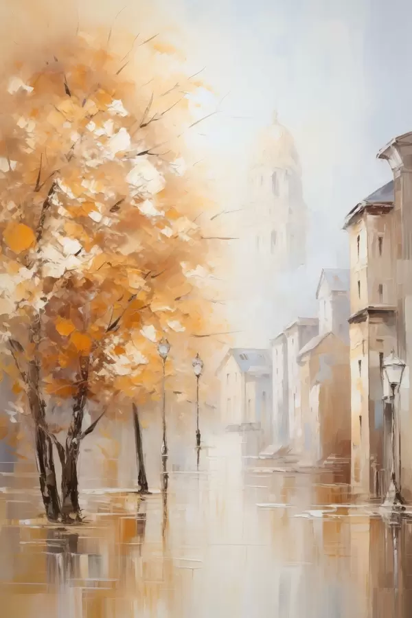 Poster Ulica z drzewami i kopułą we mgle Nr f47304