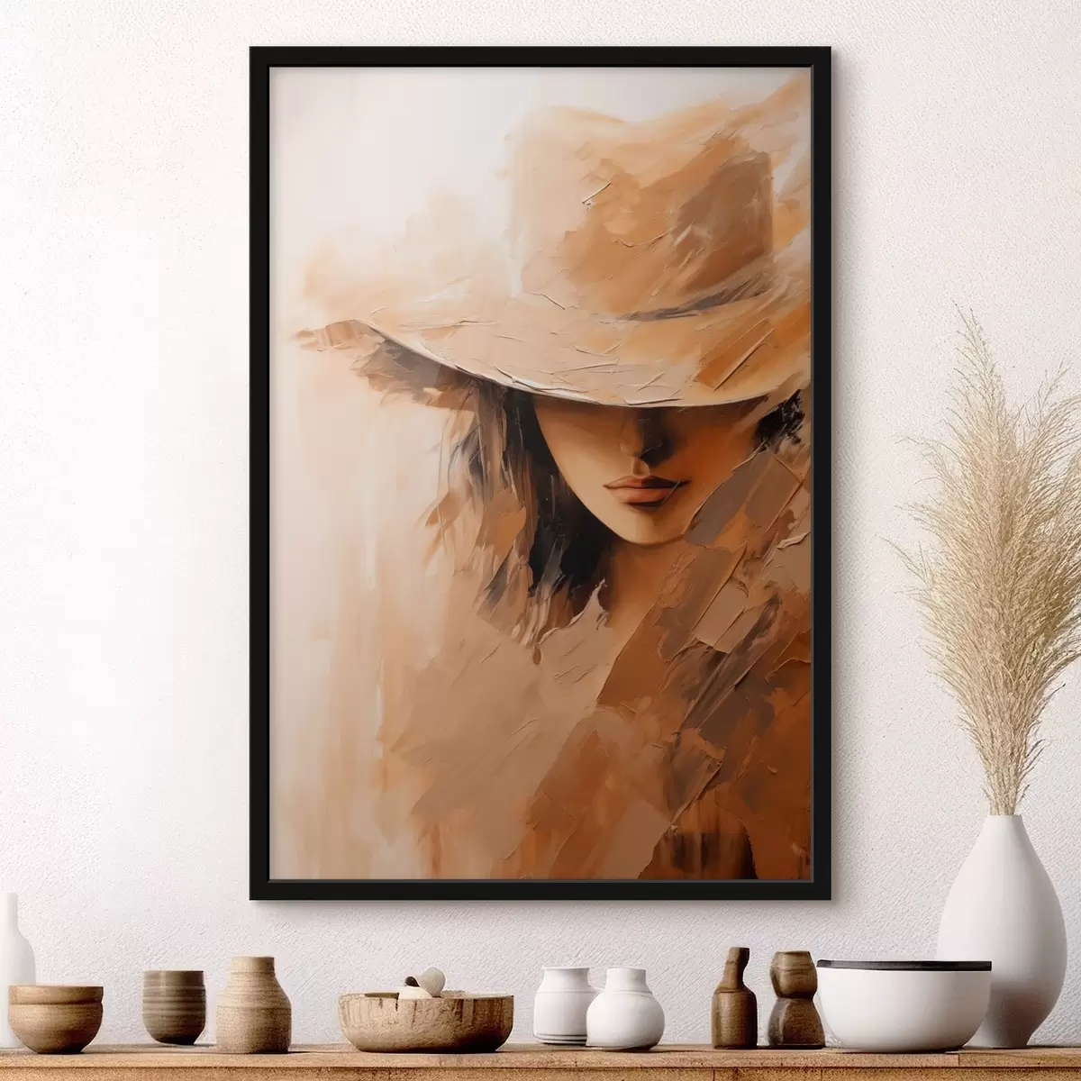 Plakat Kobieta w kapeluszu namalowana ciepłymi pociągnięciami pędzla f47315