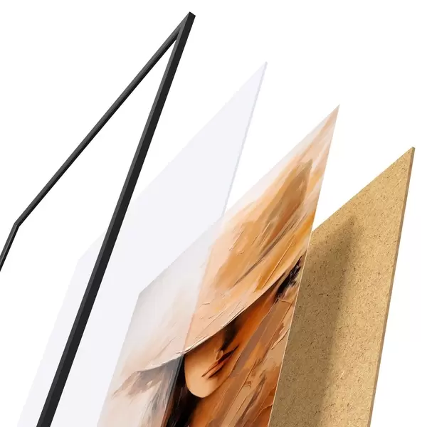 Plakat składa się z ramy, pleksi, wydrukowanego obrazu i podkładu z płyty wiórowej. Plakat można natychmiast zawiesić na ścianie dzięki uchwytom z tyłu.