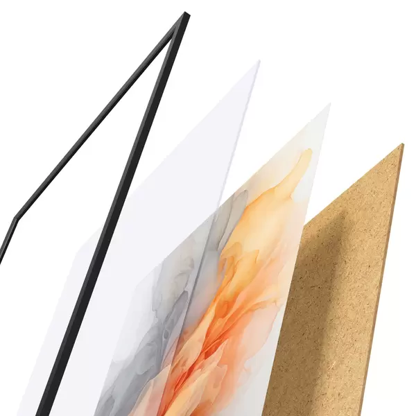 Plakat składa się z ramy, pleksi, wydrukowanego obrazu i podkładu z płyty wiórowej. Plakat można natychmiast zawiesić na ścianie dzięki uchwytom z tyłu.