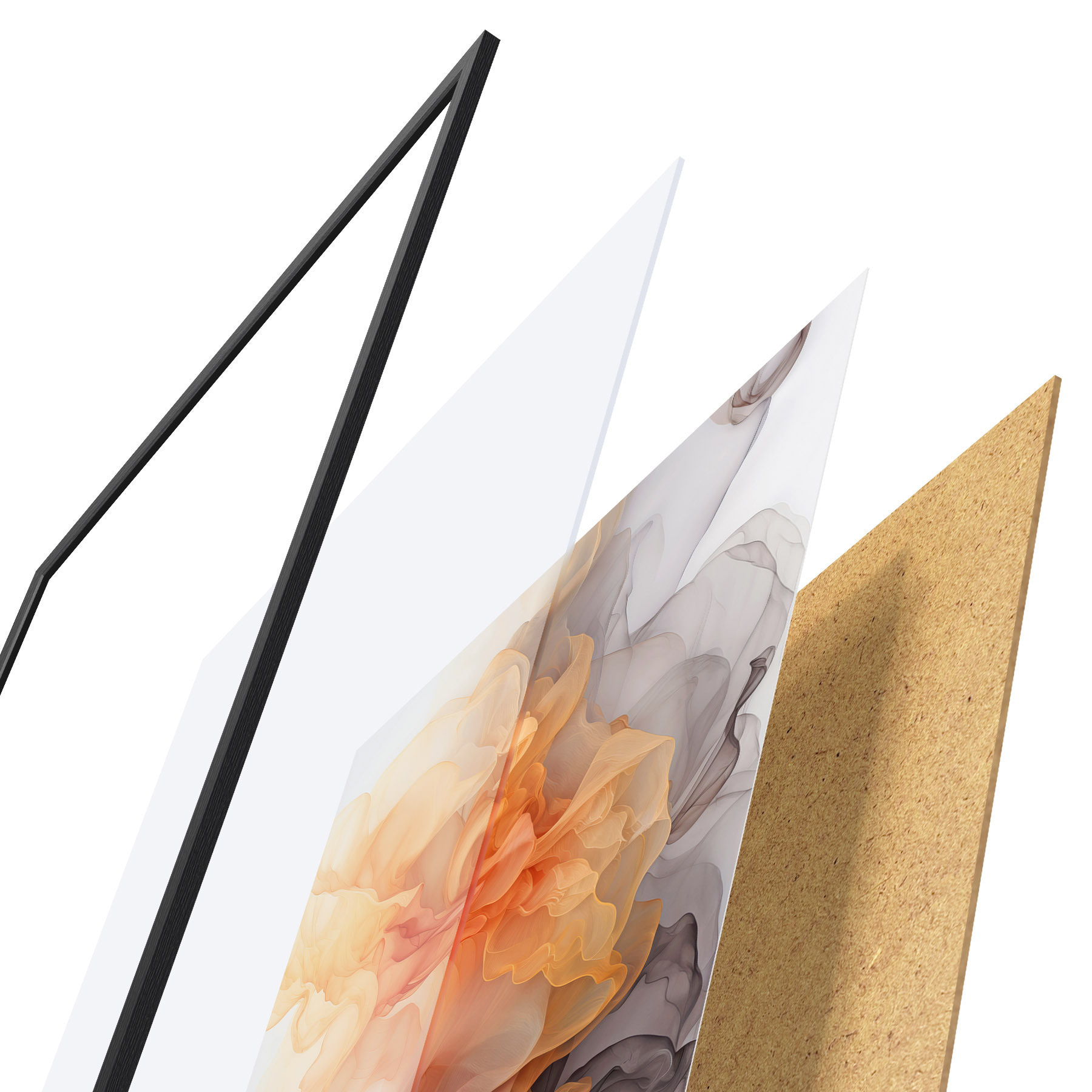 Plakat składa się z ramy, pleksi, wydrukowanego obrazu i podkładu z płyty wiórowej. Plakat można natychmiast zawiesić na ścianie dzięki uchwytom z tyłu.