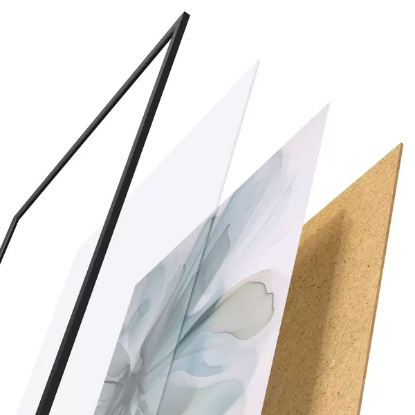 Plakat składa się z ramy, pleksi, wydrukowanego obrazu i podkładu z płyty wiórowej. Plakat można natychmiast zawiesić na ścianie dzięki uchwytom z tyłu.