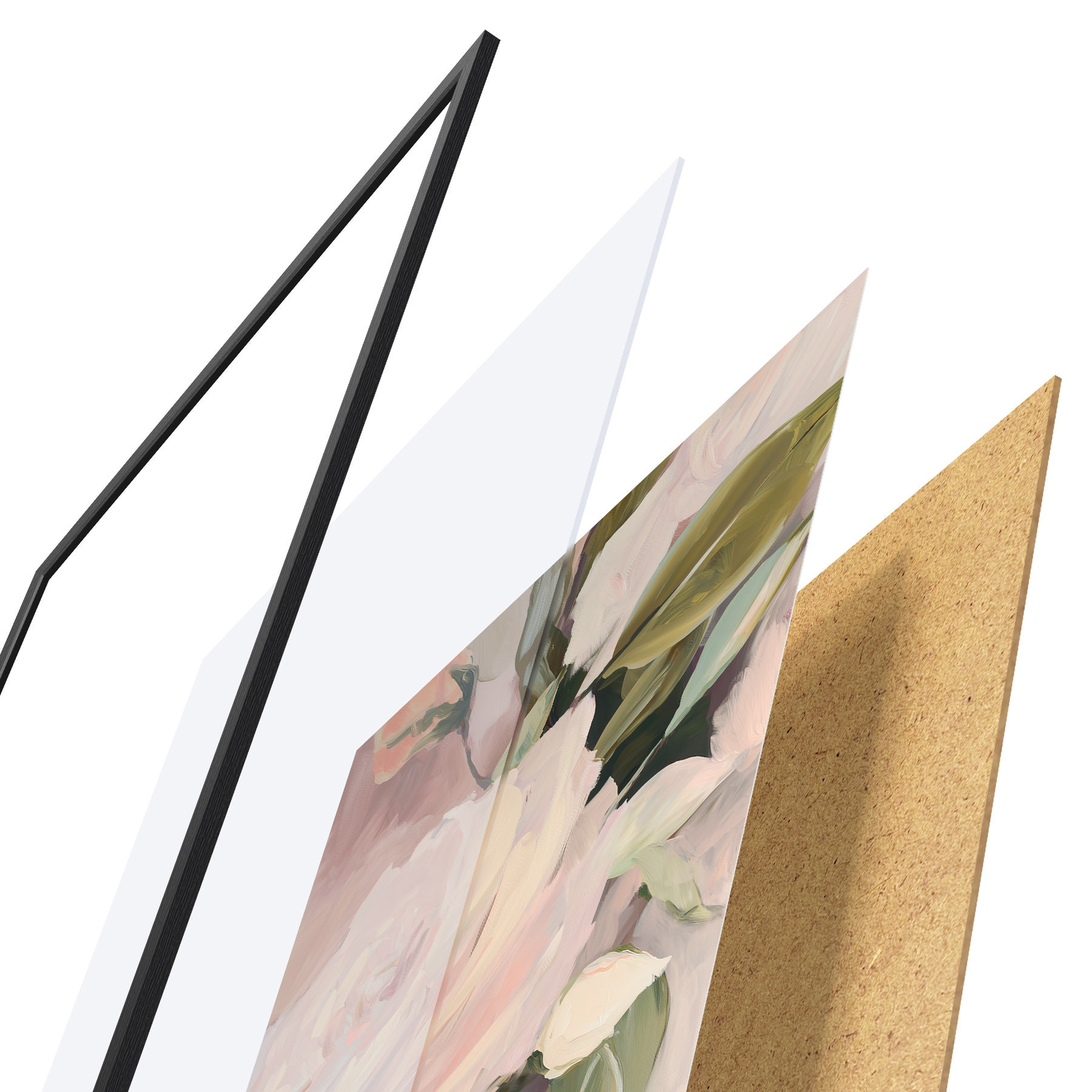 Plakat składa się z ramy, pleksi, wydrukowanego obrazu i podkładu z płyty wiórowej. Plakat można natychmiast zawiesić na ścianie dzięki uchwytom z tyłu.