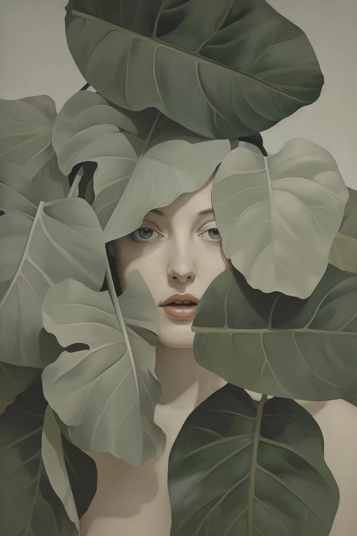 Plakat Portret dziewczyny wśród liści f47331