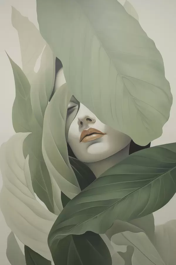 Poster Surrealistyczny portret dziewczyny wśród liści Nr f47332