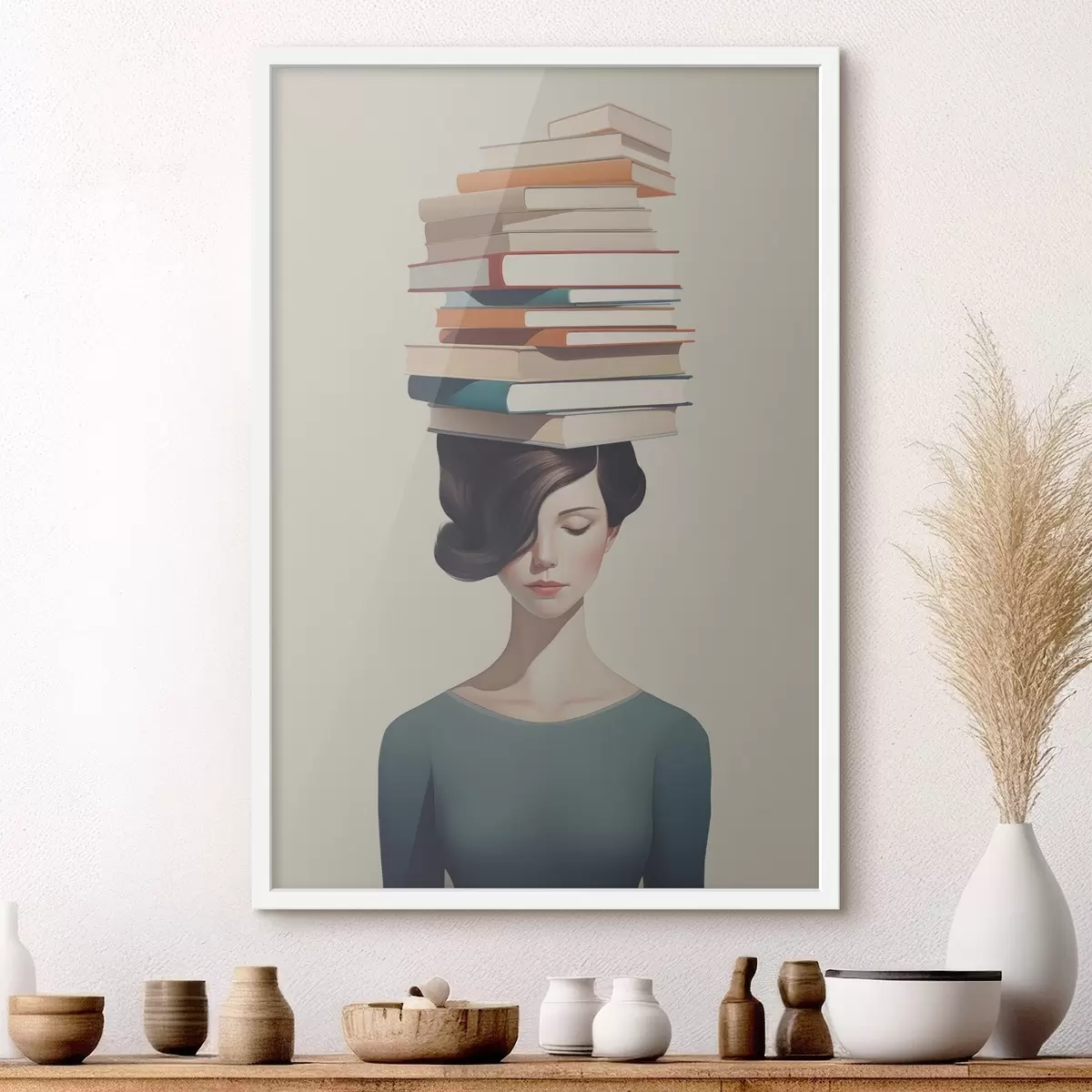 Poster Surrealistyczny portret dziewczyny z książkami Nr f47334
