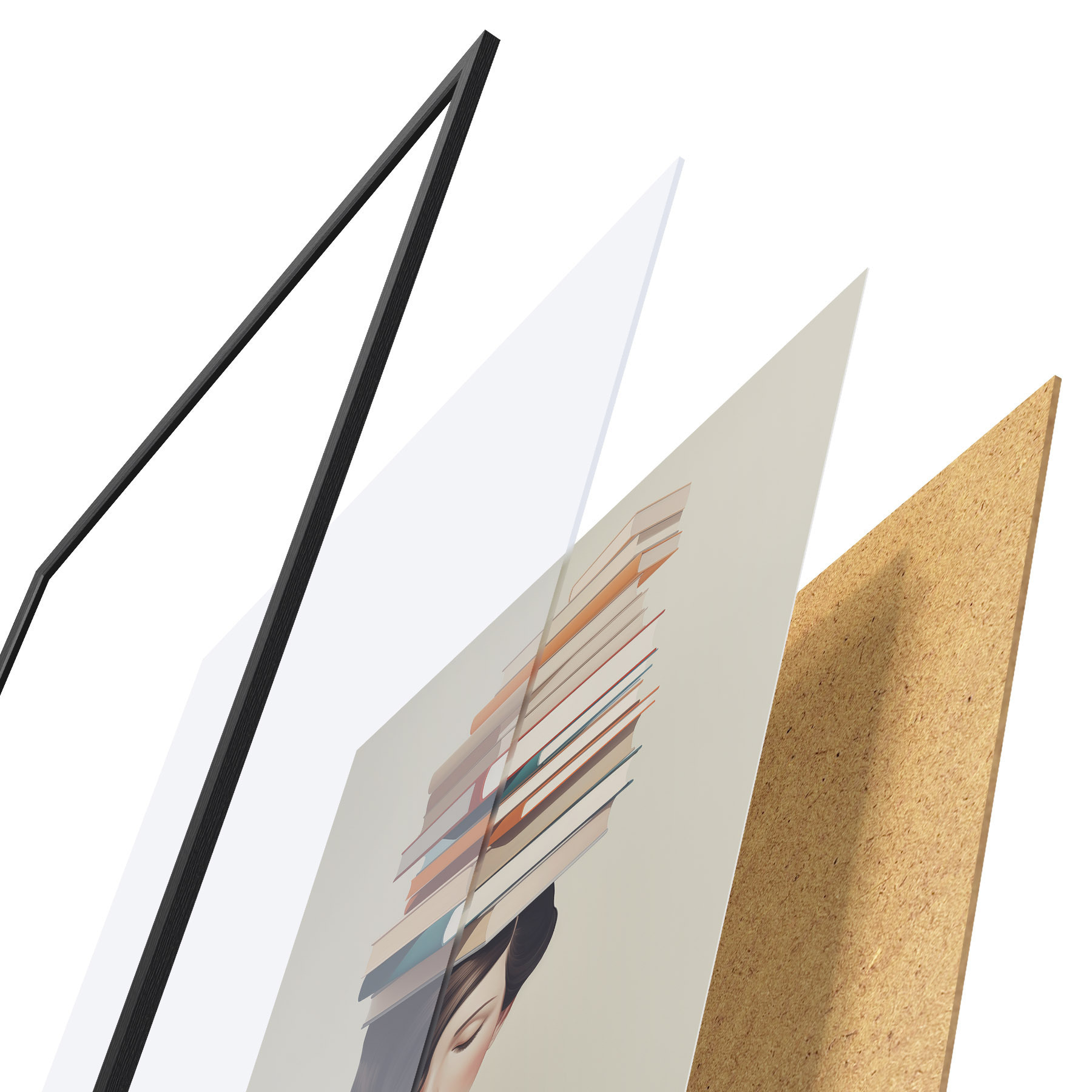 Plakat składa się z ramy, pleksi, wydrukowanego obrazu i podkładu z płyty wiórowej. Plakat można natychmiast zawiesić na ścianie dzięki uchwytom z tyłu.