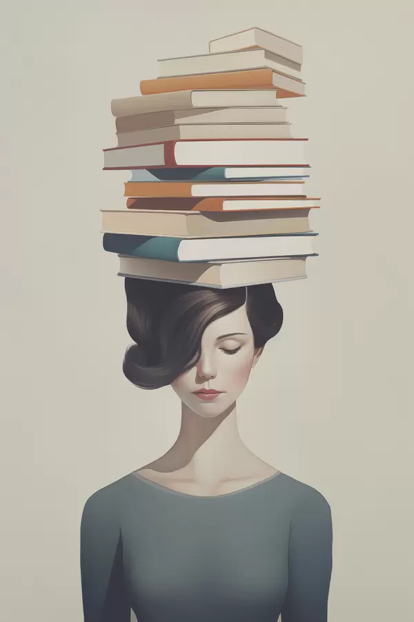 Poster Surrealistyczny portret dziewczyny z książkami Nr f47334