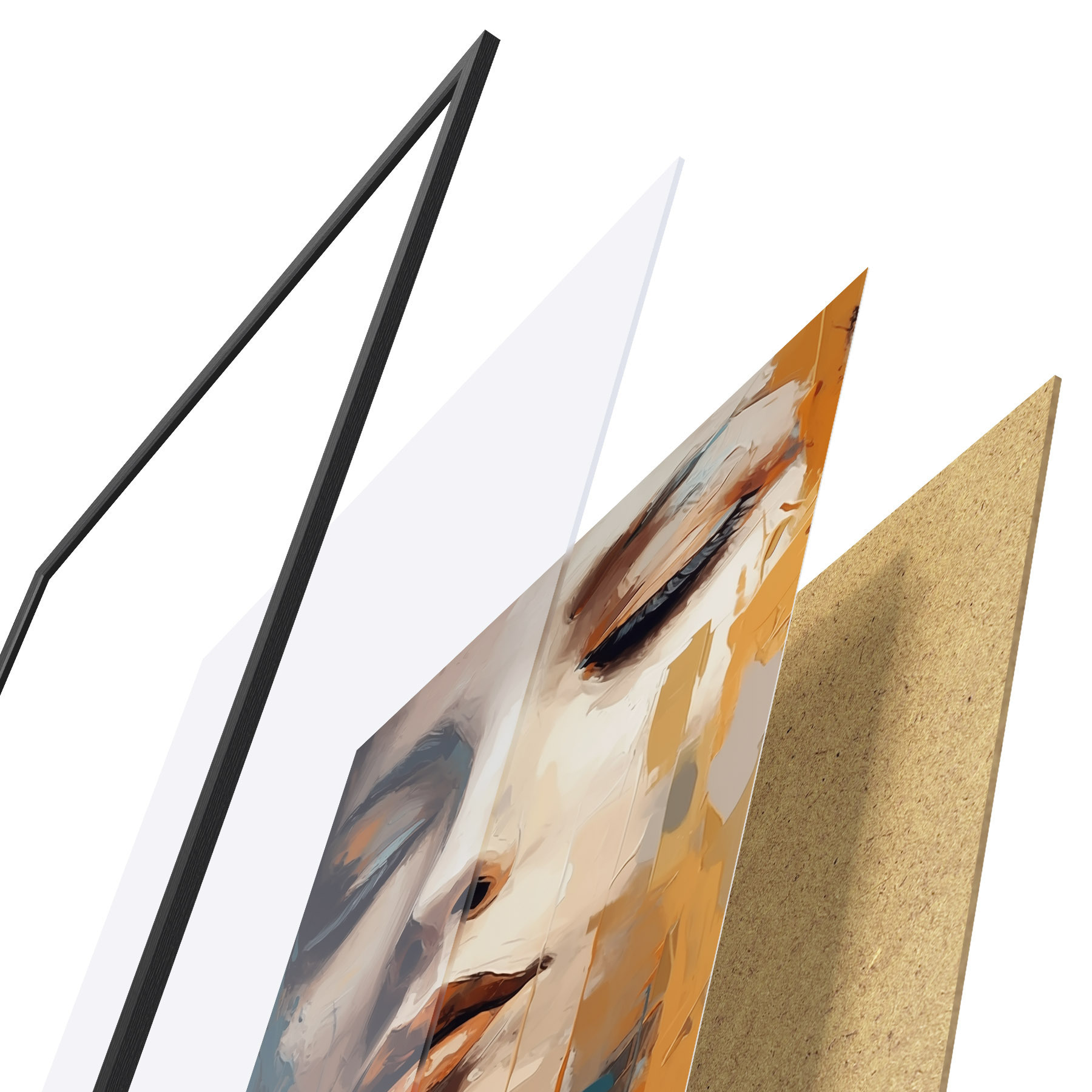 Plakat składa się z ramy, pleksi, wydrukowanego obrazu i podkładu z płyty wiórowej. Plakat można natychmiast zawiesić na ścianie dzięki uchwytom z tyłu.