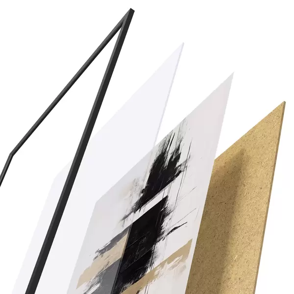 Plakat składa się z ramy, pleksi, wydrukowanego obrazu i podkładu z płyty wiórowej. Plakat można natychmiast zawiesić na ścianie dzięki uchwytom z tyłu.