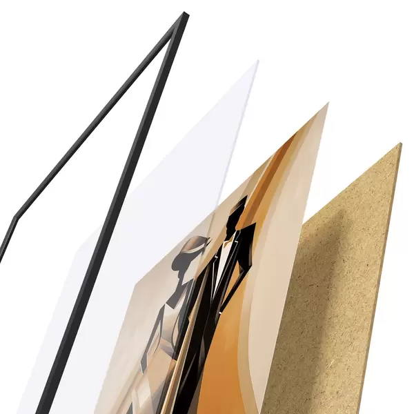 Plakat składa się z ramy, pleksi, wydrukowanego obrazu i podkładu z płyty wiórowej. Plakat można natychmiast zawiesić na ścianie dzięki uchwytom z tyłu.