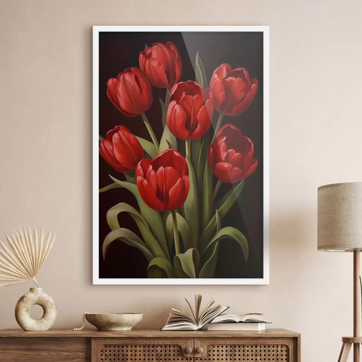 Plakat składa się z ramy, pleksi, wydrukowanego obrazu i podkładu z płyty wiórowej. Plakat można natychmiast zawiesić na ścianie dzięki uchwytom z tyłu.