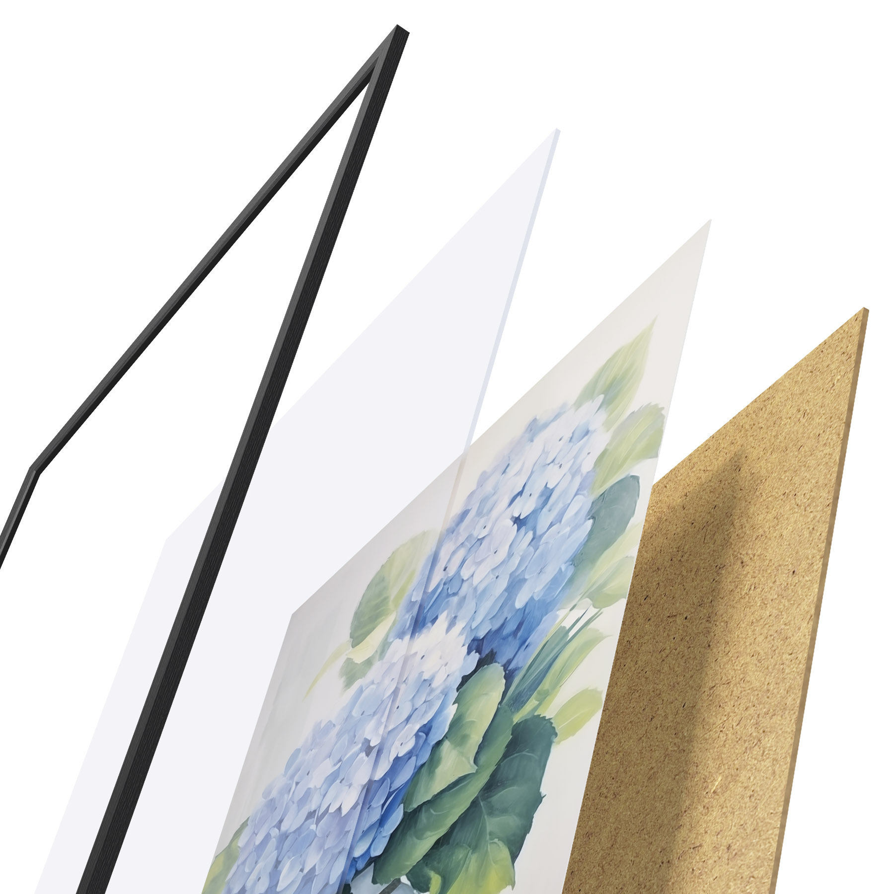Plakat składa się z ramy, pleksi, wydrukowanego obrazu i podkładu z płyty wiórowej. Plakat można natychmiast zawiesić na ścianie dzięki uchwytom z tyłu.