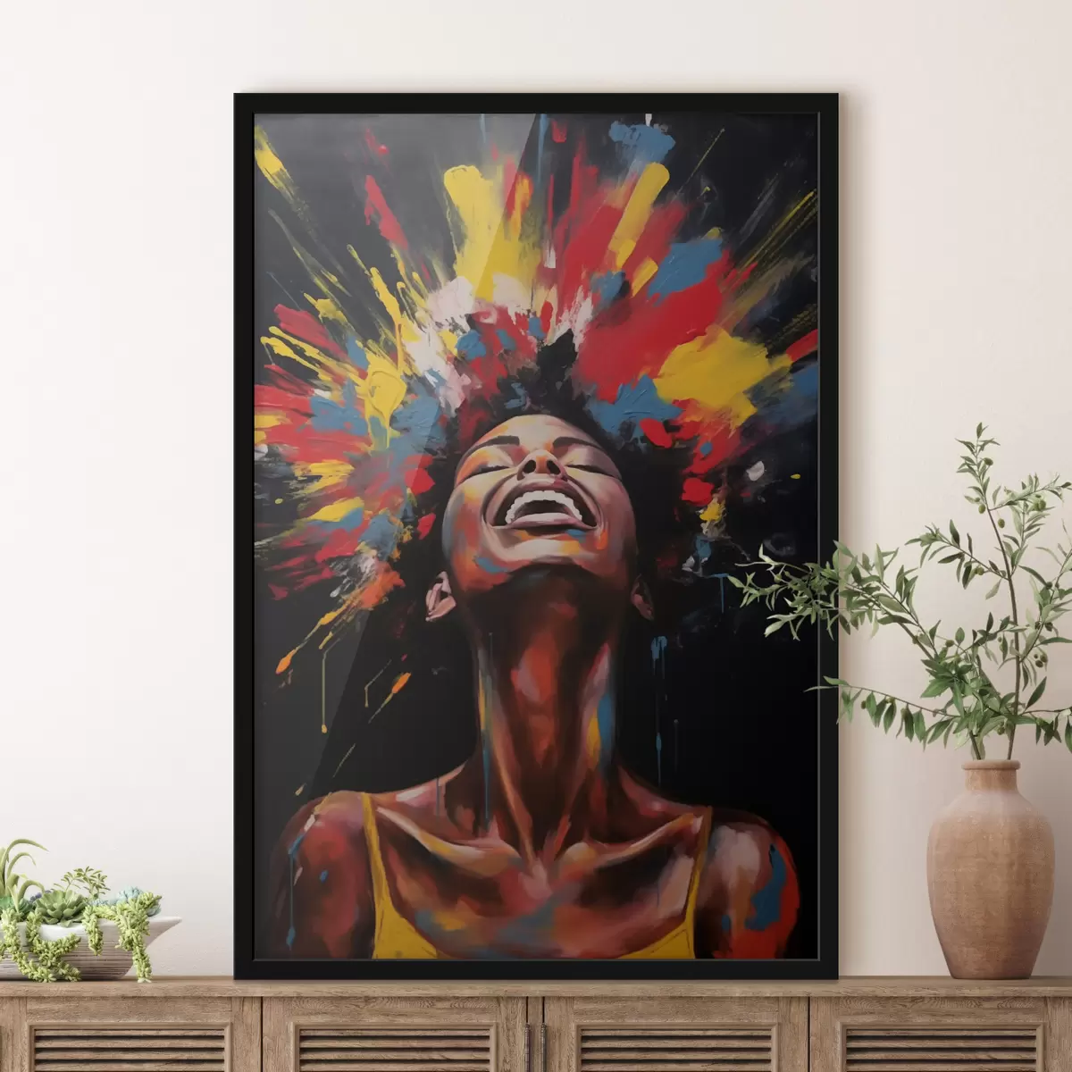 Plakat składa się z ramy, pleksi, wydrukowanego obrazu i podkładu z płyty wiórowej. Plakat można natychmiast zawiesić na ścianie dzięki uchwytom z tyłu.