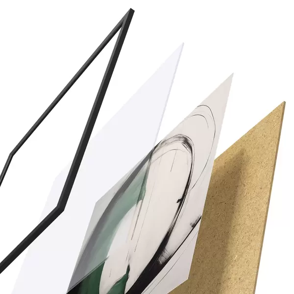 Plakat składa się z ramy, pleksi, wydrukowanego obrazu i podkładu z płyty wiórowej. Plakat można natychmiast zawiesić na ścianie dzięki uchwytom z tyłu.