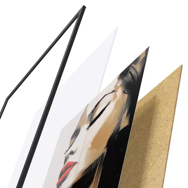 Plakat składa się z ramy, pleksi, wydrukowanego obrazu i podkładu z płyty wiórowej. Plakat można natychmiast zawiesić na ścianie dzięki uchwytom z tyłu.