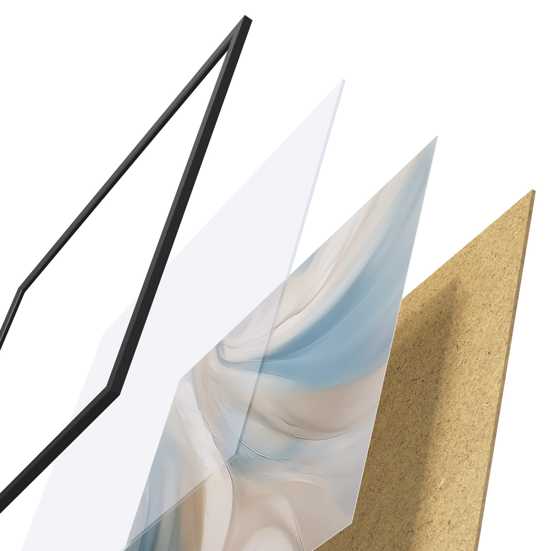 Plakat składa się z ramy, pleksi, wydrukowanego obrazu i podkładu z płyty wiórowej. Plakat można natychmiast zawiesić na ścianie dzięki uchwytom z tyłu.