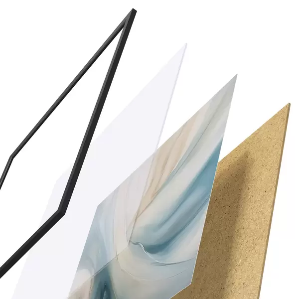 Plakat składa się z ramy, pleksi, wydrukowanego obrazu i podkładu z płyty wiórowej. Plakat można natychmiast zawiesić na ścianie dzięki uchwytom z tyłu.