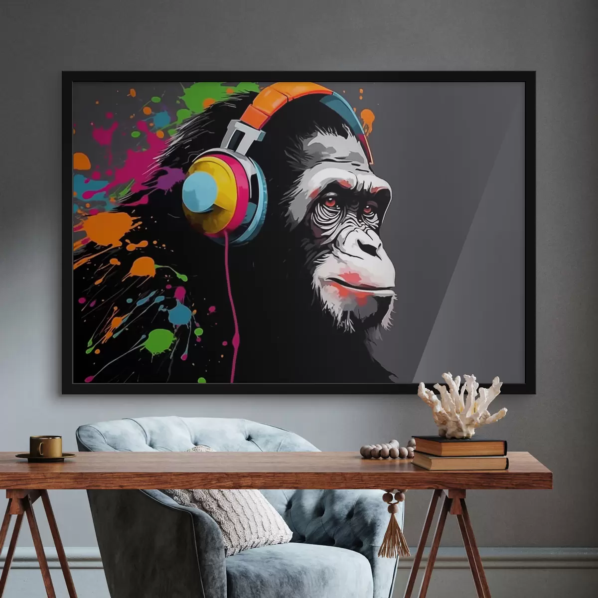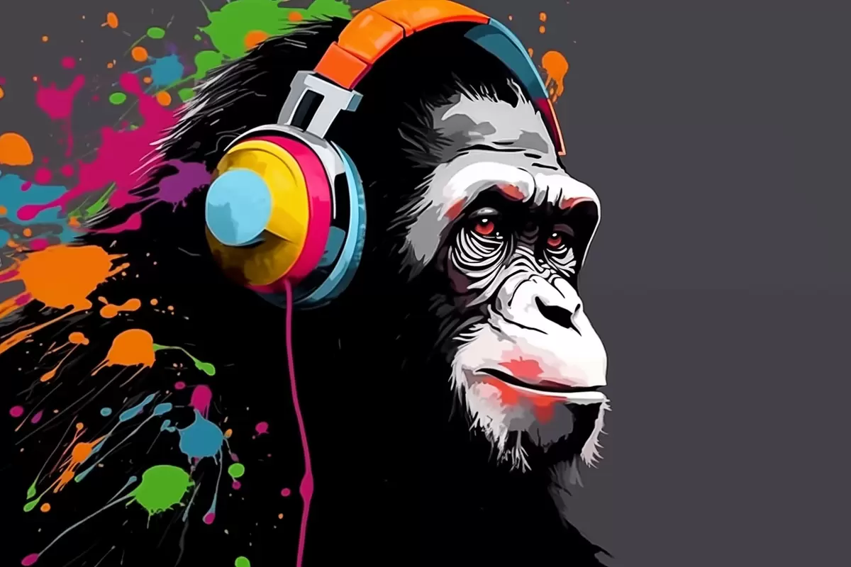 Poster Małpa ze słuchawkami Nr f47385
