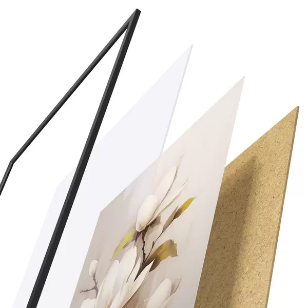 Plakat składa się z ramy, pleksi, wydrukowanego obrazu i podkładu z płyty wiórowej. Plakat można natychmiast zawiesić na ścianie dzięki uchwytom z tyłu.