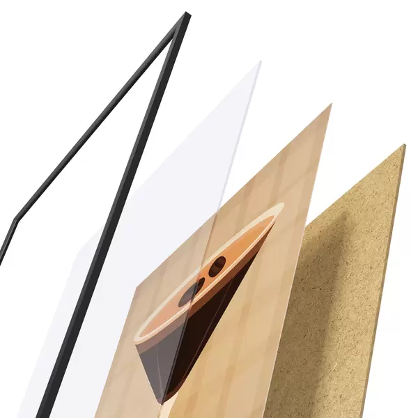 Plakat składa się z ramy, pleksi, wydrukowanego obrazu i podkładu z płyty wiórowej. Plakat można natychmiast zawiesić na ścianie dzięki uchwytom z tyłu.