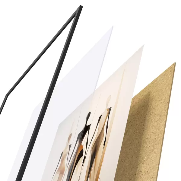 Plakat składa się z ramy, pleksi, wydrukowanego obrazu i podkładu z płyty wiórowej. Plakat można natychmiast zawiesić na ścianie dzięki uchwytom z tyłu.