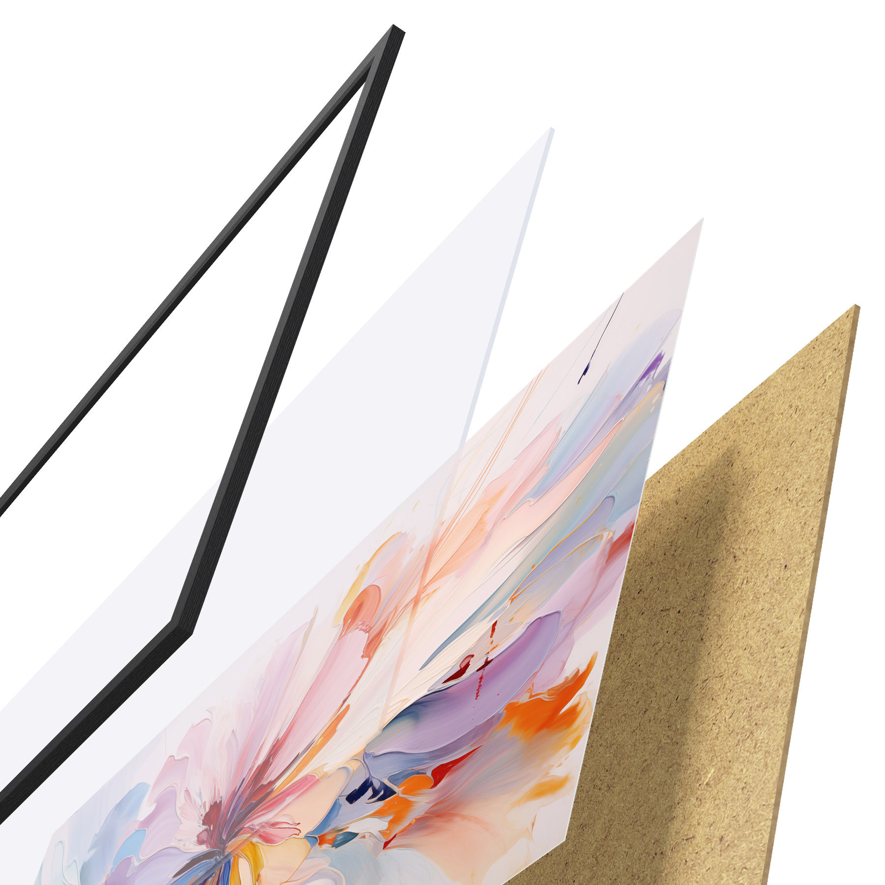 Plakat składa się z ramy, pleksi, wydrukowanego obrazu i podkładu z płyty wiórowej. Plakat można natychmiast zawiesić na ścianie dzięki uchwytom z tyłu.