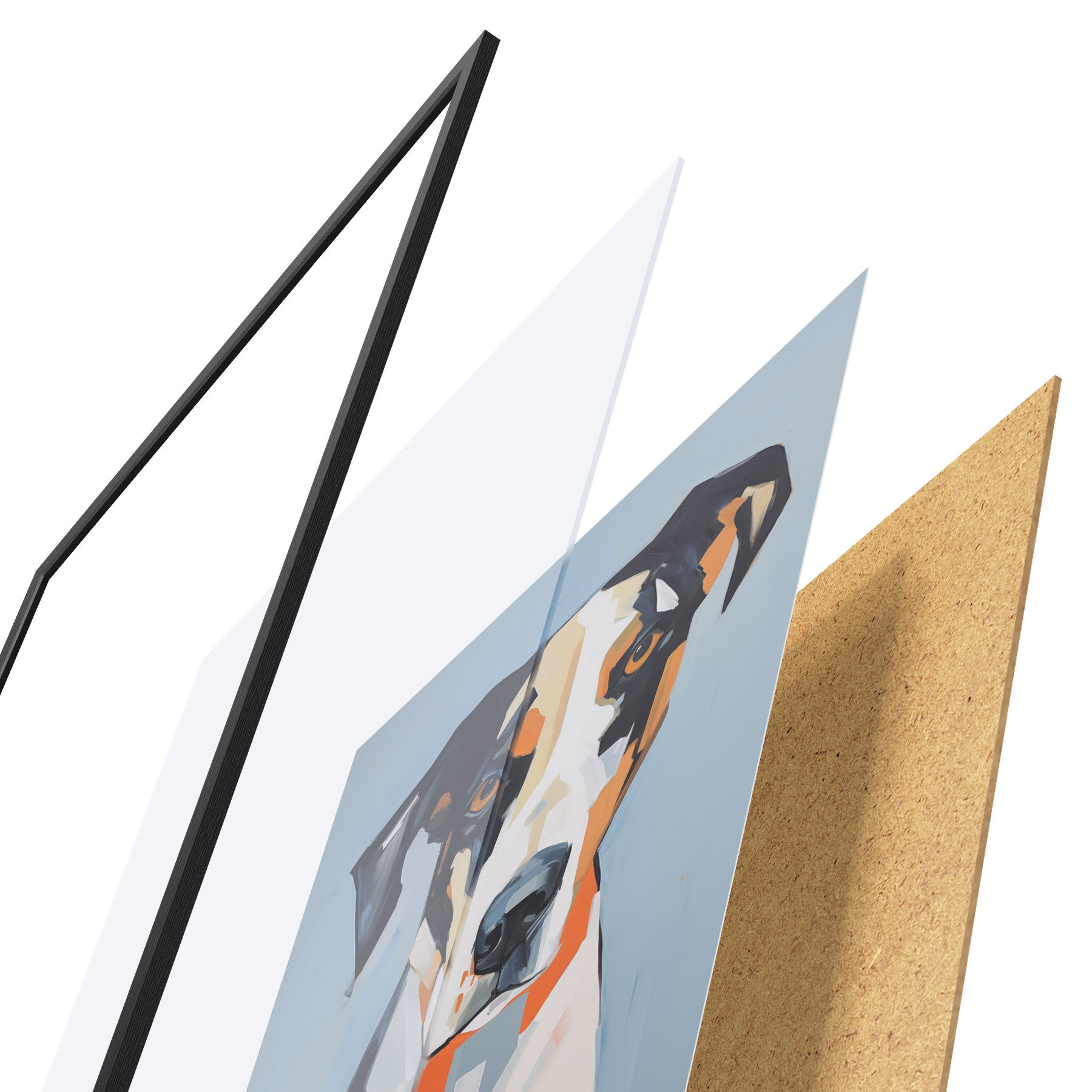 Plakat składa się z ramy, pleksi, wydrukowanego obrazu i podkładu z płyty wiórowej. Plakat można natychmiast zawiesić na ścianie dzięki uchwytom z tyłu.