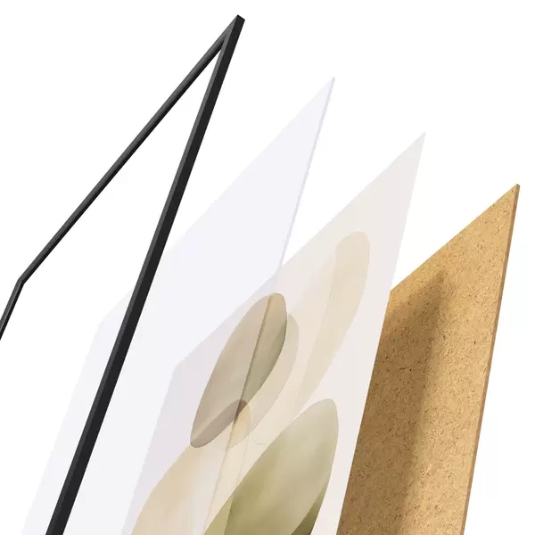 Plakat składa się z ramy, pleksi, wydrukowanego obrazu i podkładu z płyty wiórowej. Plakat można natychmiast zawiesić na ścianie dzięki uchwytom z tyłu.