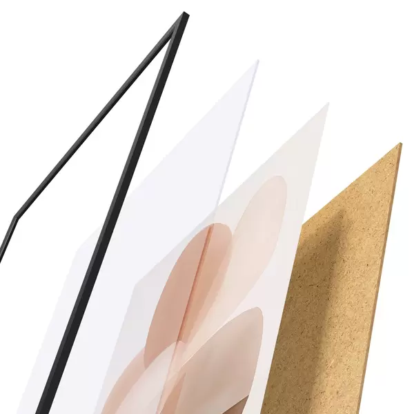 Plakat składa się z ramy, pleksi, wydrukowanego obrazu i podkładu z płyty wiórowej. Plakat można natychmiast zawiesić na ścianie dzięki uchwytom z tyłu.