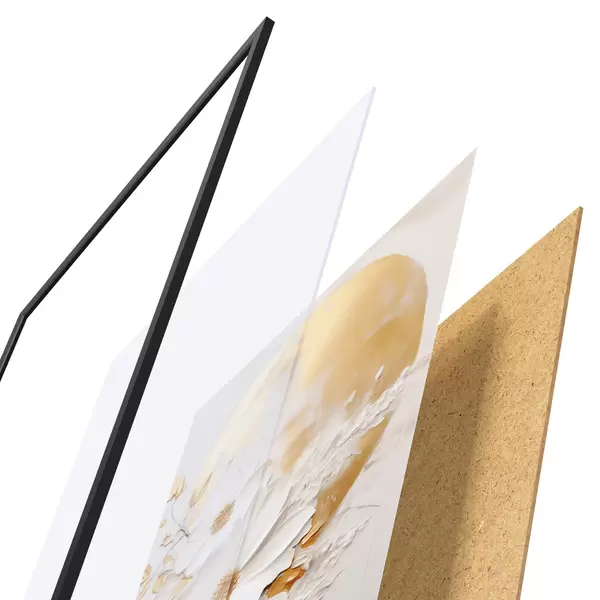 Plakat składa się z ramy, pleksi, wydrukowanego obrazu i podkładu z płyty wiórowej. Plakat można natychmiast zawiesić na ścianie dzięki uchwytom z tyłu.