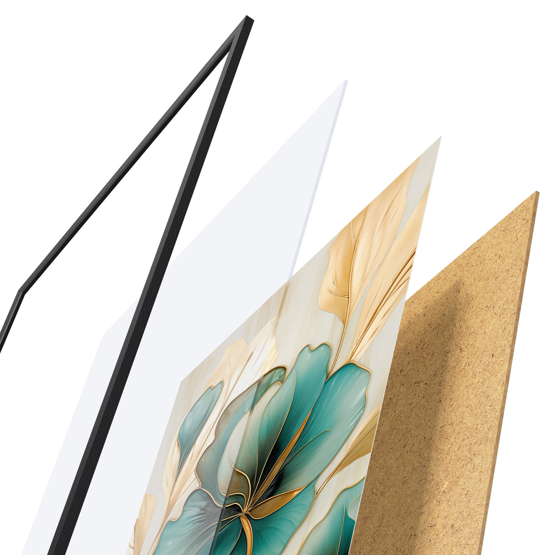 Plakat składa się z ramy, pleksi, wydrukowanego obrazu i podkładu z płyty wiórowej. Plakat można natychmiast zawiesić na ścianie dzięki uchwytom z tyłu.