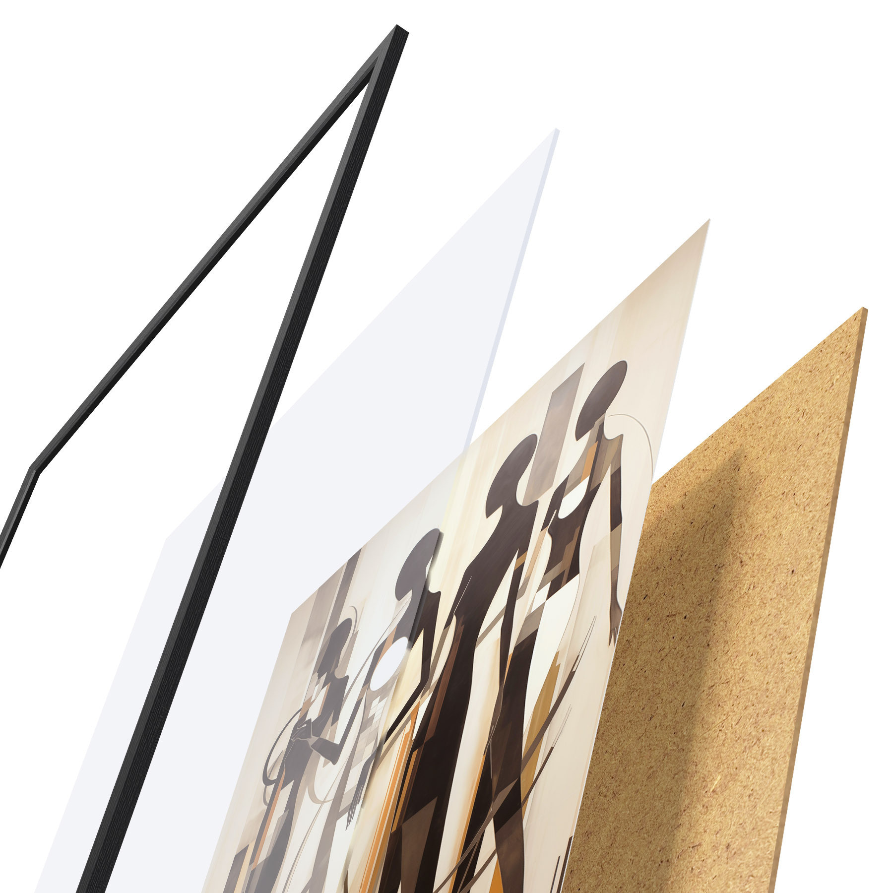 Plakat składa się z ramy, pleksi, wydrukowanego obrazu i podkładu z płyty wiórowej. Plakat można natychmiast zawiesić na ścianie dzięki uchwytom z tyłu.