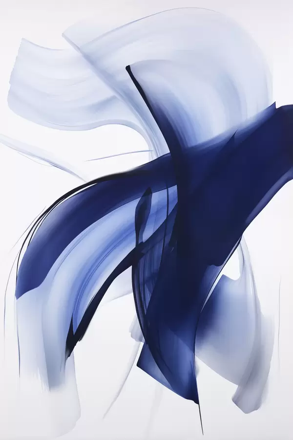 Plakat Abstrakcyjne niebieskie kształty przypominające pociągnięcia pędzla, z płynnymi liniami i krzywiznami na białym tle, sztuka nowoczesna f47429