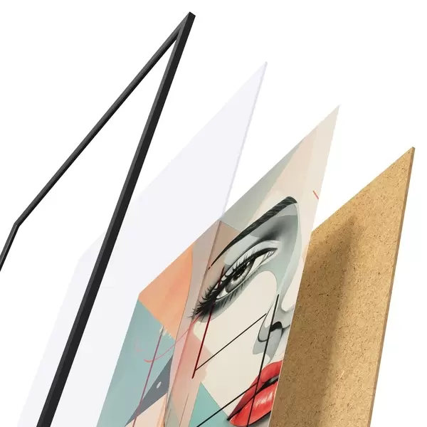 Plakat składa się z ramy, pleksi, wydrukowanego obrazu i podkładu z płyty wiórowej. Plakat można natychmiast zawiesić na ścianie dzięki uchwytom z tyłu.