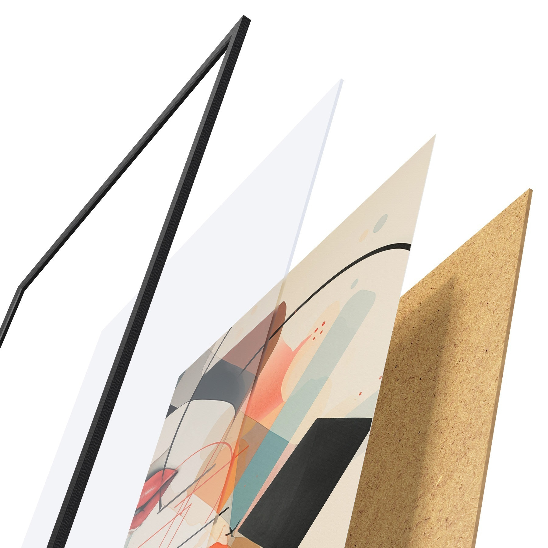 Plakat składa się z ramy, pleksi, wydrukowanego obrazu i podkładu z płyty wiórowej. Plakat można natychmiast zawiesić na ścianie dzięki uchwytom z tyłu.