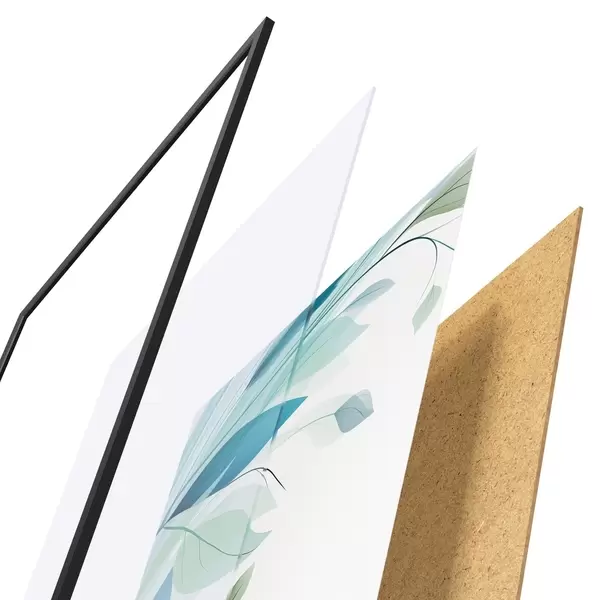 Plakat składa się z ramy, pleksi, wydrukowanego obrazu i podkładu z płyty wiórowej. Plakat można natychmiast zawiesić na ścianie dzięki uchwytom z tyłu.