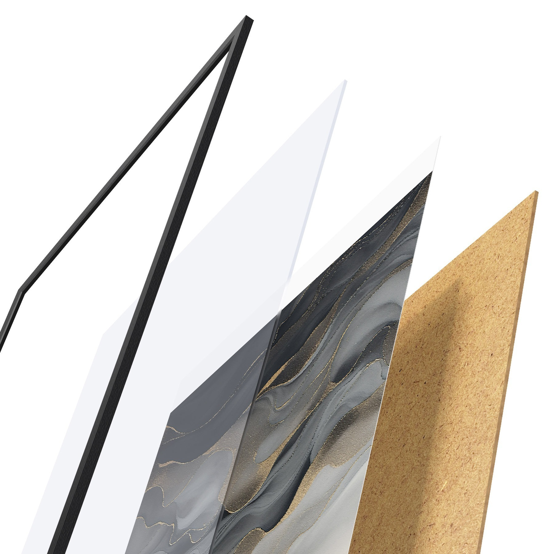 Plakat składa się z ramy, pleksi, wydrukowanego obrazu i podkładu z płyty wiórowej. Plakat można natychmiast zawiesić na ścianie dzięki uchwytom z tyłu.