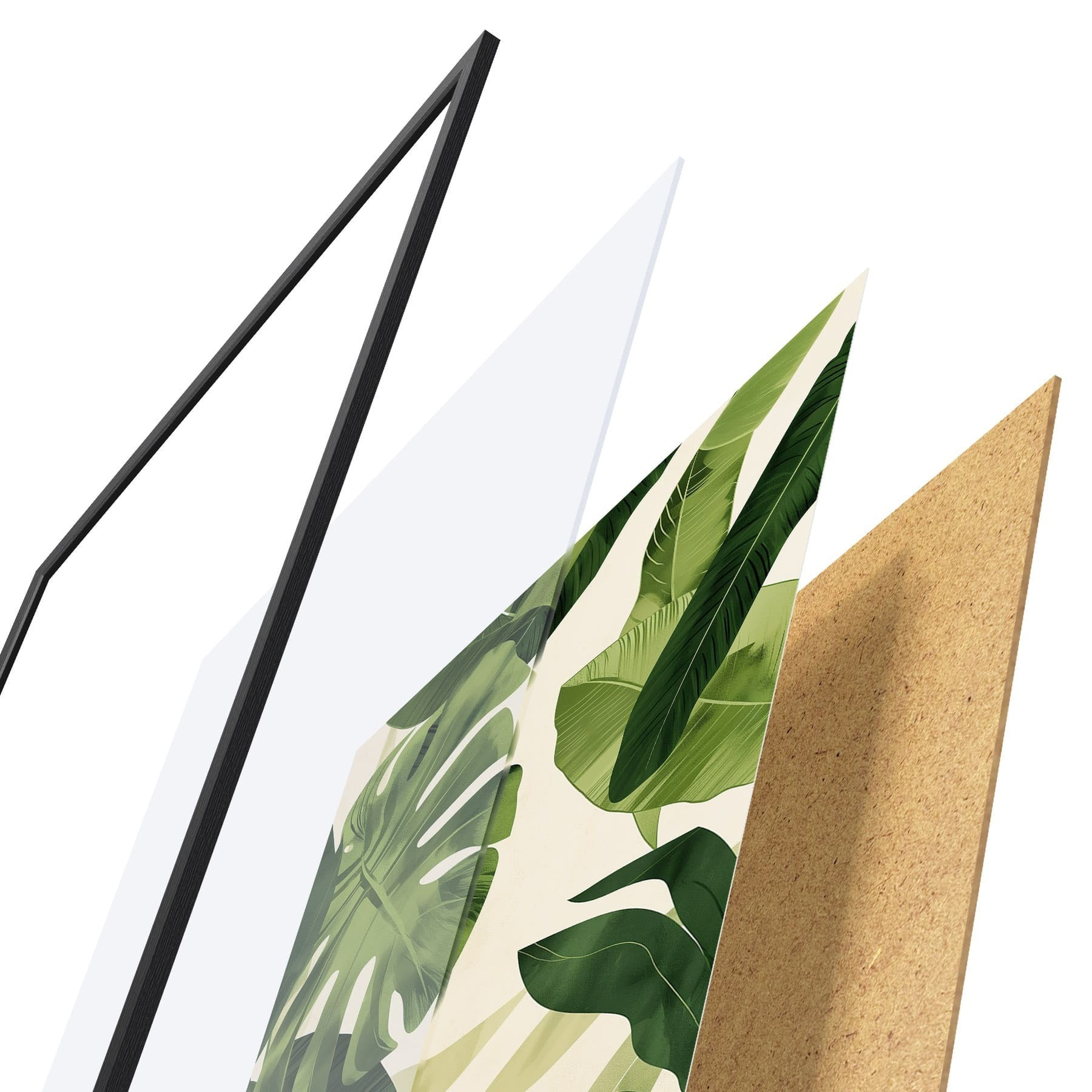 Plakat składa się z ramy, pleksi, wydrukowanego obrazu i podkładu z płyty wiórowej. Plakat można natychmiast zawiesić na ścianie dzięki uchwytom z tyłu.