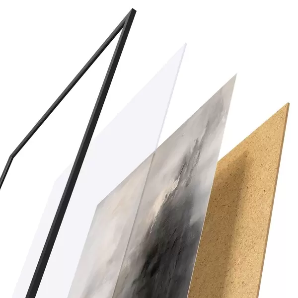 Plakat składa się z ramy, pleksi, wydrukowanego obrazu i podkładu z płyty wiórowej. Plakat można natychmiast zawiesić na ścianie dzięki uchwytom z tyłu.