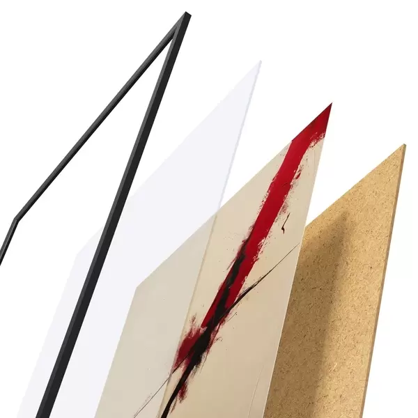 Plakat składa się z ramy, pleksi, wydrukowanego obrazu i podkładu z płyty wiórowej. Plakat można natychmiast zawiesić na ścianie dzięki uchwytom z tyłu.