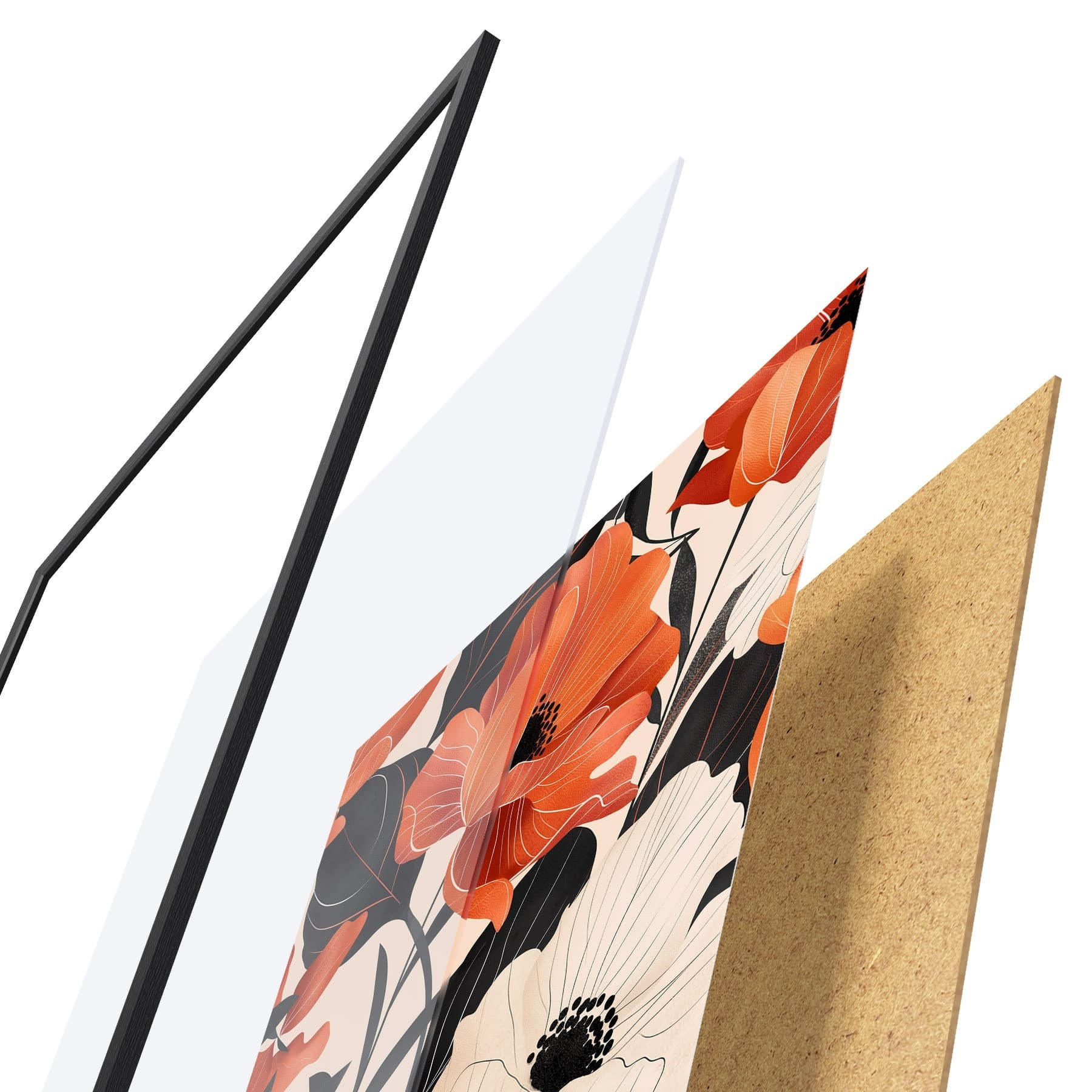 Plakat składa się z ramy, pleksi, wydrukowanego obrazu i podkładu z płyty wiórowej. Plakat można natychmiast zawiesić na ścianie dzięki uchwytom z tyłu.