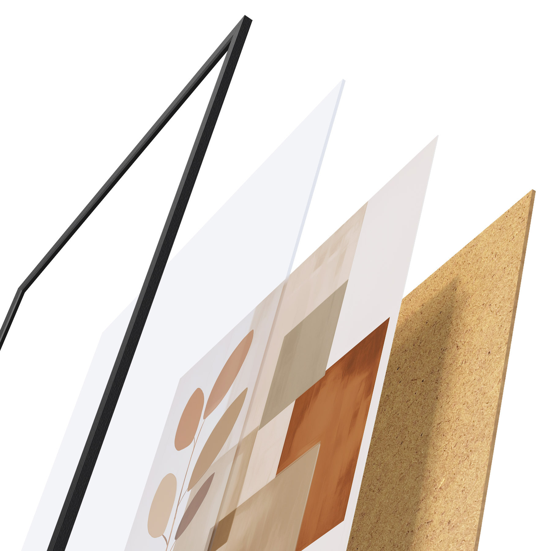 Plakat składa się z ramy, pleksi, wydrukowanego obrazu i podkładu z płyty wiórowej. Plakat można natychmiast zawiesić na ścianie dzięki uchwytom z tyłu.