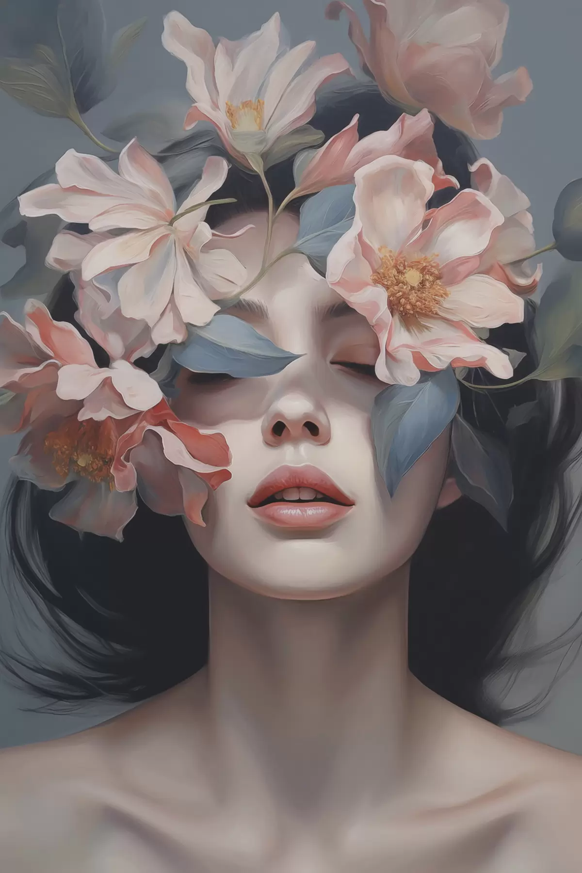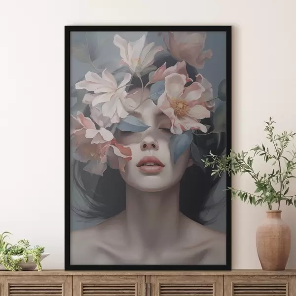 Poster Abstrakcyjny portret kobiety z kwiatami Nr f47488