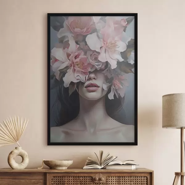 Poster Surrealistyczny portret kobiety z kwiatami Nr f47489