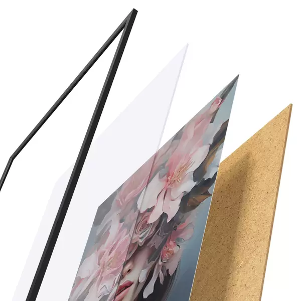 Plakat składa się z ramy, pleksi, wydrukowanego obrazu i podkładu z płyty wiórowej. Plakat można natychmiast zawiesić na ścianie dzięki uchwytom z tyłu.