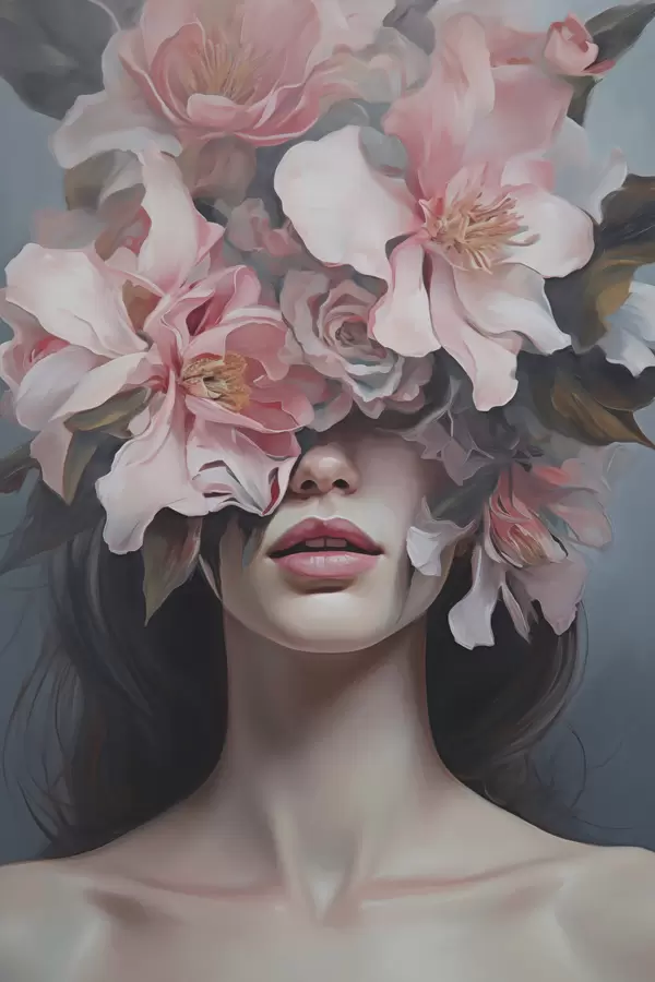 Plakat Surrealistyczny portret kobiety z kwiatami f47489